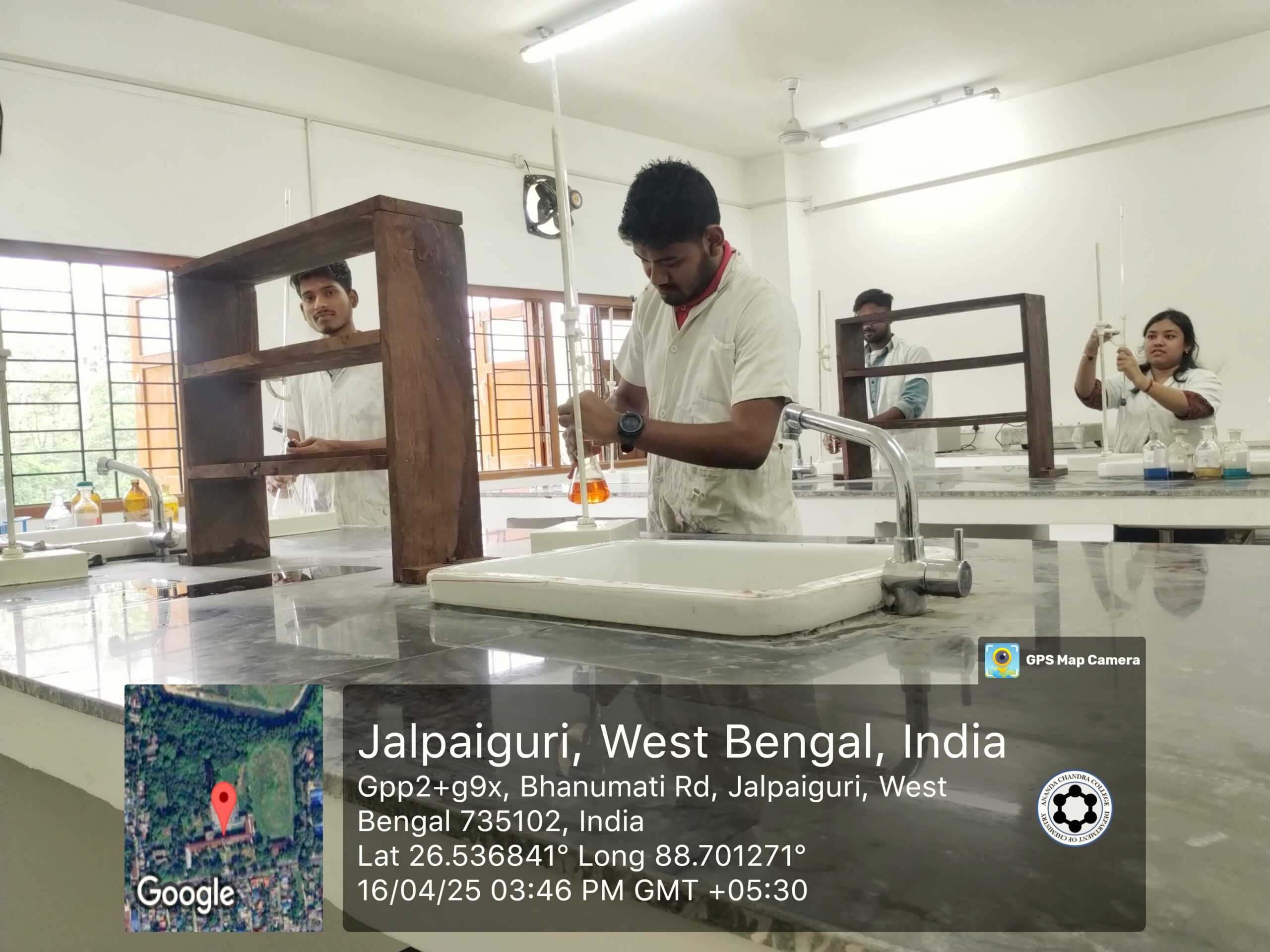 The Department of Chemistry began its journey at the college in the academic year 1943–44 with the introduction of the Intermediate of Science (I.Sc.), later under the West Bengal Board of Higher Secondary Education (WBBHSE) and continued until 1999. The B.Sc. Pass Course in Chemistry was introduced in 1958–59, followed by the commencement of the Honours undergraduate course in 1965–66. At present, the department offers both Major and MDC courses under the Four-Year Undergraduate Programme (FYUGP). The intake capacity for the Major course is 40 students.