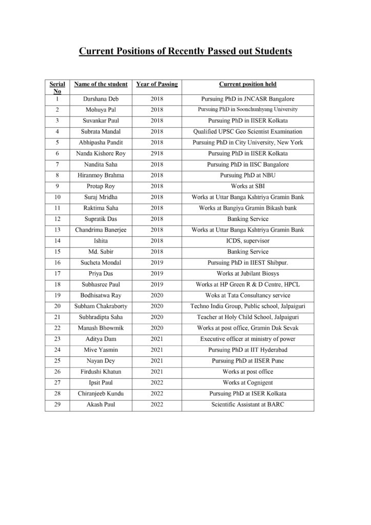 During its long journey the department excelled in quality education by contributions from large number of efficient faculty members and laboratory attendants. The students after graduating from the department established themselves in different academic, research and various prestigious non -academic fields.