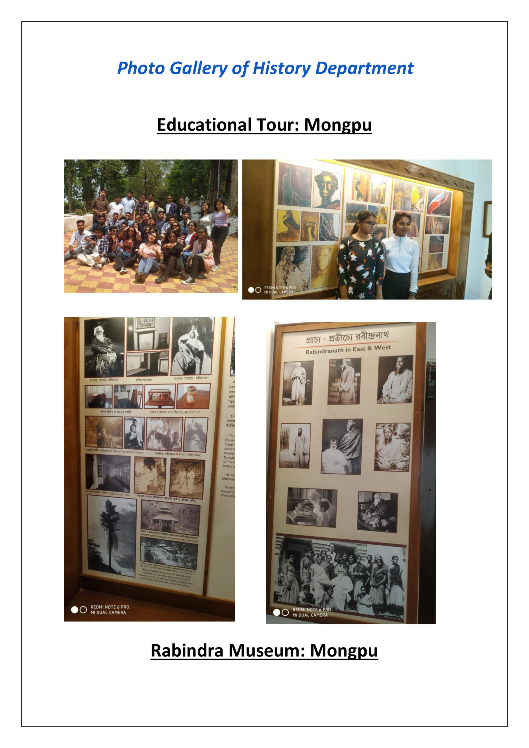 The Educational Tour Programme of the Department of History of Ananda Chandra College has been arranged in 2022-2023 academic session like previous academic year. The destination of this Tour Programme is Rabindra Museum, Mongpoo, district Darjeeling. The museum house was a bungalow where famous poet Rabindranath Tagore stayed in 1938 as a guest of eminent quintologist Dr. Manmohan Sen and his wife Maitreyi Debi, the creator of “Na Hanyate” novel. This bungalow had been transformed into museum with various photographs, paintings, and a few original writings of Tagore together with some writing items used by Tagore.